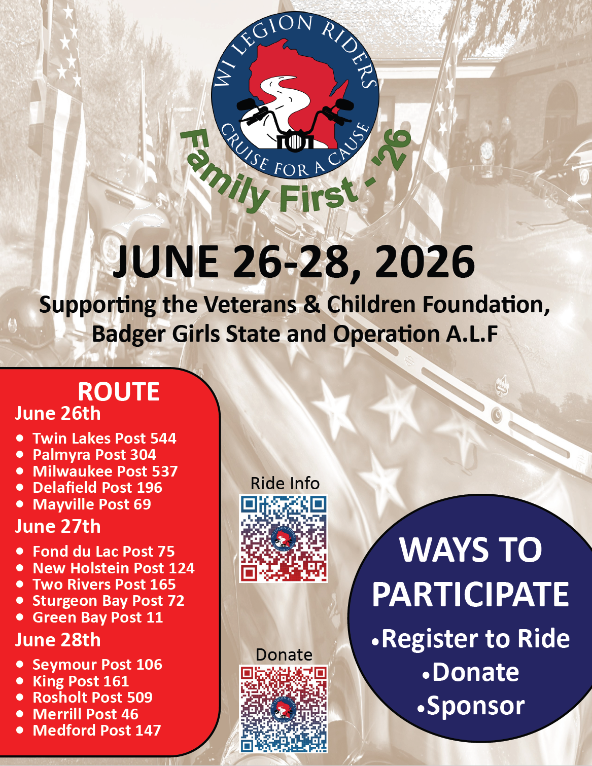 Online Registration closes June 22, 2026. In-person registration is available at Kenosha Post 21, 504 58th Street, Kenosha, WI on Thursday June 25th from 4:30 PM to 5:30 PM.